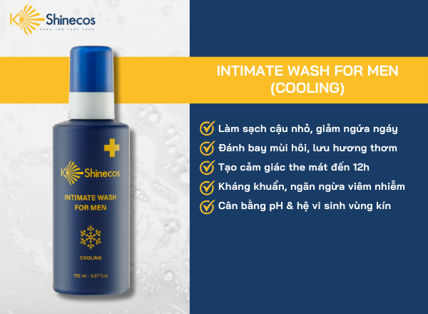 Intimate Wash Cooling - Dung dịch vệ sinh đến từ thương hiệu KShinecos được thiết kế đặc biệt dành cho vùng nhạy cảm của phái mạnh. Sản phẩm giúp vùng kín được làm sạch sâu và loại bỏ mọi tác nhân gây hại như bụi bẩn, vi khuẩn, mồ hôi, giữ cho nơi ấy luôn thông thoáng. Đồng thời, Intimate Wash giúp cân bằng độ pH và duy trì độ ẩm tự nhiên cho da. Với chiết xuất 100% thiên nhiên và mang lại cảm giác mát lạnh sảng khoái, xua tan sự bí bách, ngứa ngáy đồng thời lưu hương thơm mát đến tận 12 giờ.